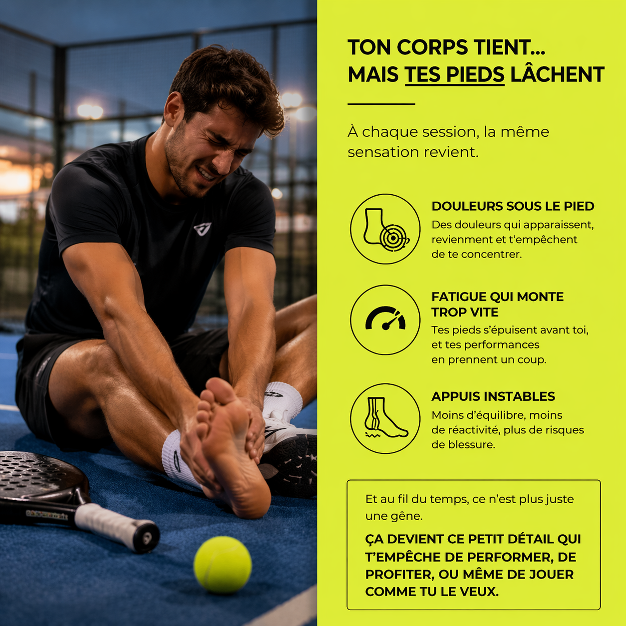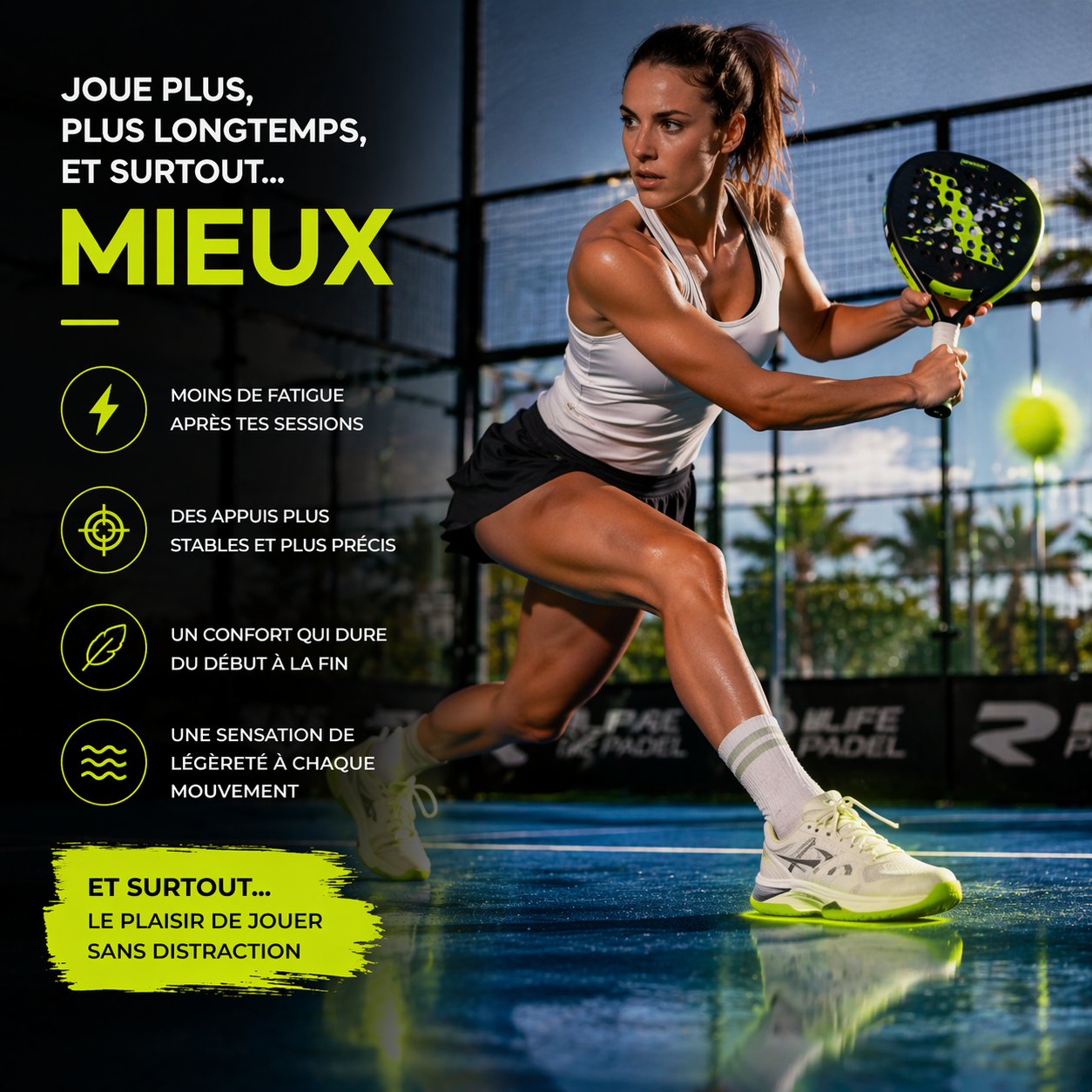 absorbe les impacts et améliore ton équilibre, que tu sois sur un terrain de padel, tennis, ou en salle ou en extérieur.