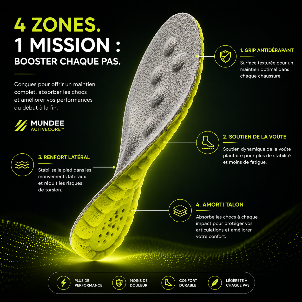 Avec Mundee ActiveCore™, chaque mouvement devient plus stable, plus fluide, plus naturel.